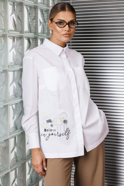 Стильный трехпредметный комплект для офиса. Комплект состоит из жилета, блузы и юбки. Жилет полуприлегающего силуэта с рельефами и фигурной баской. Застежка двубортная на петли-пуговицы. Вдоль линии борта жилет на подкладке. Блуза прямого силуэта в боковых швах с разрезами. По переду с нагрудной вытачкой, выходящей из бокового шва. Воротник рубашечный. Рукав втачной, одношовный, сверху по окату с небольшой сборкой. Застежка на петли-пуговицы. Юбка прямая, зауженная к низу, сзади со средним швом, переходящим в шлицу. Верх юбки на притачном поясе, по бокам с резинками. Юбка на подкладке. Дополнением и ярким акцентом является бант на блузе.
