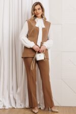 Брюки, жилет: полиэстер 75%, вискоза 20%, спандекс 5%.