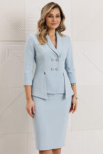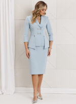 Что сделает комплимент Вашей фигуре? Правильный силуэт! Костюм от бренда Мода-Юрс подчеркнет все изгибы и достоинства Вашей фигуры. Жакет полуприлегающего силуэта с отрезной баской фигурной формы и воротником “шалька”. Перед с рельефами, выходящими из проймы. Спинка со средним швом. Рукав втачной, двухшовный. Юбка прямая, зауженная к низу, сзади со средним швом, переходящим в шлицу. Застежка на тесьму-молнию. Пояс притачной, по бокам с резинками. Жакет и юбка на подкладке.
