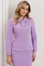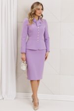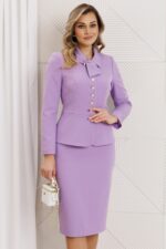 Элегантность с характером. Именно так можно описать одну из новинок от брэнда “Мода-Юрс”. Она идеально впишется в модный гардероб и подчеркнет вашу естественную красоту. Жакет полуприлегающего силуэта с рельефами, отрезной по линии талии, спинка со средним швом. Рукав втачной двухшовный. Воротник декорирован протяжкой. Застежка центральная на петли-пуговицы, сверху на крючок. Юбка прямая, зауженная к низу, сверху на притачном поясе. Застежка на тесьму-молнию в среднем шве, который переходит в шлицу. Костюм на подкладке.