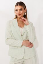 Облегченный костюм из натуральной ткани — это идеальный выбор для стильных и комфортных вечеринок или встреч. Жакет классического кроя с бочком и изящными талиевыми вытачками подчеркивает фигуру, а карманы с клапанами добавляют функциональности. Воротник пиджачного типа и закругленные борта придают образу элегантность, а спинка с средним швом и шлицей обеспечивает свободу движений. Рукава втачные, двухшовные, с шлицей и пуговицами, создают стильный акцент. Центральная застежка на петли и пуговицы добавляет нотку классики. Брюки палаццо с складками от талии обеспечивают комфорт и легкость, а притачной пояс с шлевками и застежка на молнию в среднем шве завершают образ, сочетая элегантность и практичность. Этот костюм станет отличным выбором для любого мероприятия, подчеркивая ваш утонченный вкус.