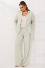 Брюки, жакет: лен 43%, вискоза 25%, полиамид 27%, эластан 5%.